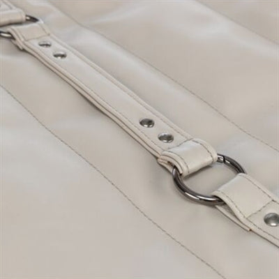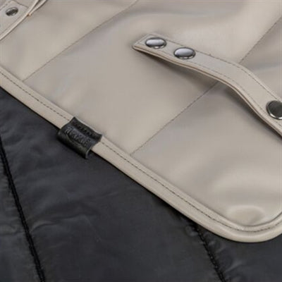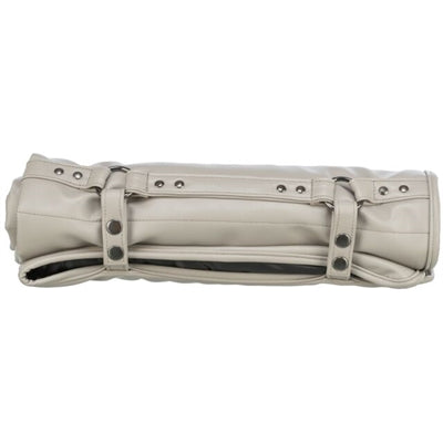 The Trixie Citystyle Faux Leather Dog Blanket Travel Blanket Light Grey 80 cm is made of faux leather that feels like nylon, with a durable polyurethane/polyester cover and a 2 cm thick polyester fleece filling. The blanket is made from recycled material, making it a sustainable choice. It rolls up compactly and fastens easily with snaps, and features a detachable handle for easy transport. Thanks to its water-repellent properties and easy care—just wipe it down—this travel blanket is perfect for any adventurous dog and its owner.