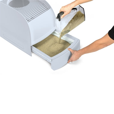 The entrance to this litter box is on the top, preventing dogs from entering. Thanks to the innovative holes in the top, the litter falls back into the box when your cat leaves, reducing litter around the litter box. The slide-out litter tray makes cleaning easy and efficient, leaving you more time to enjoy your pet.