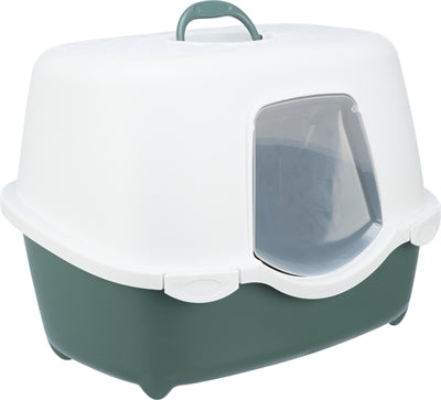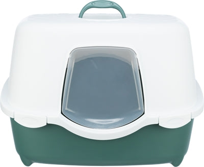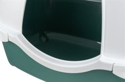 The Trixie Davio Cat Litter Box Green/White 56X39X39 cm is a user-friendly plastic litter box with a hood and click closure, equipped with a filter. Looking for the perfect litter box for your beloved feline? Look no further than the Davio litter box! This litter box is the ideal solution for cat owners seeking a convenient, practical, and hygienic option for their pet.