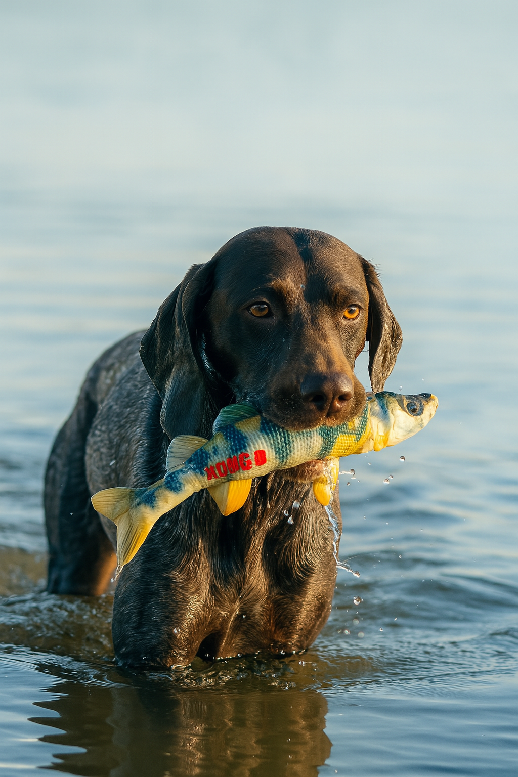 The Kong Wild Shieldz Perch 28X7.5X5 cm is the ideal training aid for dogs who want to hone their hunting and diving skills. With an innovative triple coating and a waterproof seal, this toy is designed to last, even during retrieving sessions in the water. The high-tech coating ensures that the fish floats, making it easy for your dog to pick up. Thanks to the realistic design and extra heft, these fish can be thrown further than most dummies, providing an intense workout. The Kong Shieldz Wildz fish offers interactive fun that satisfies your dog's natural instincts. Its sturdy design also makes it ideal for diving and hunting training!