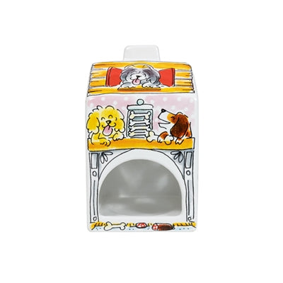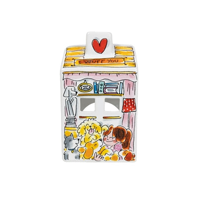 The Blond Amsterdam Light House Dog 8X8X14 cm is a cute, brightly colored tea light house with an all-around dog print that provides an atmospheric light with a tea light. The house is made of earthenware and is 14 centimeters high. The windows illuminate the room beautifully. The chimney and dog print in Blond Amsterdam style make this light house the perfect addition to the home of any dog lover!