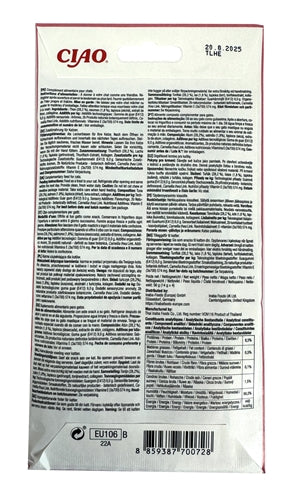 Inaba Churu Tuna/Salmon 4x14 grams is a creamy, moisture-rich, grain-free cat snack. Cats often have a tendency to drink too little, which can lead to dehydration. So give your cat this irresistible Churu cat snack! This delicious cat snack is made with a moist cream that comes in dispensing pouches. Cats love the creamy texture! This delicious recipe is grain-free and contains vitamin E. No artificial preservatives!