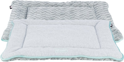 The Trixie Junior Mat Light Grey/Green 70X50 cm is a comfortable, double-sided mat made of soft fleece, ideal for puppies, smaller dogs, or cats. Your dog will dream away on this lovely mat from Trixie! This mat for dog or cat is made of wonderfully soft fabric, with one side plush and the other sweat fabric. Cool and cute in one, just like the color scheme! The mat is lined with polyester fleece filling for extra comfort. Hand washable for a longer life.