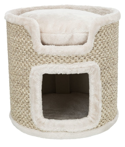 The Trixie Ria Scratching Post Light Gray/Natural 37X37X37 cm is a round scratching barrel for cats with sisal scratching surfaces, a hiding place, a cushion, and padded lying areas. A wonderful place of your own for your cat does not have to take up too much space, as this fun scratching barrel from Trixie proves. Scratching barrel Ria is a compact scratching post for cats with two levels. The lying areas are padded for more comfort, and the included reversible cushion ensures that your cat can dream away in sweet, soft surroundings. The hiding place at the bottom is covered with lovely soft plush and fleece, and the outside of the barrel is covered with sisal to offer your cat plenty of scratching opportunities. Scratching is a natural need for cats, so always ensure there are enough opportunities to prevent your cat from starting on the furniture!