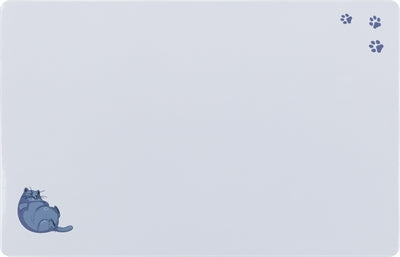 The Trixie Placemat Fat Cat Gray, measuring 44 x 28 cm, is a non-slip plastic placemat with a fun print. It's ideal for placing under your pet's food and water bowls. This prevents the bowls from sliding around while eating and drinking, and it's easy to keep the area around the bowls clean, as the placemat catches splashes and spilled food.