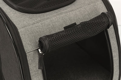 The Trixie Travel Basket Trolley Black/Light Gray 67X34X43 cm is a travel basket on wheels for the cat or small dog, with an extendable handle, top and front opening and a short leash. Take your cat or small dog comfortably with you on your travels with this Trolley from Trixie. This handy travel basket is designed as a trolley, equipped with wheels and an extendable telescopic handle for comfortable movement. The trolley is equipped with openings at the top and sides for easy access to the animal and outside pockets to easily carry items. The integrated short leash ensures that your animal cannot simply jump out of the basket. The removable bottom plate covered with imitation sheepskin provides even more comfort for your animal!
